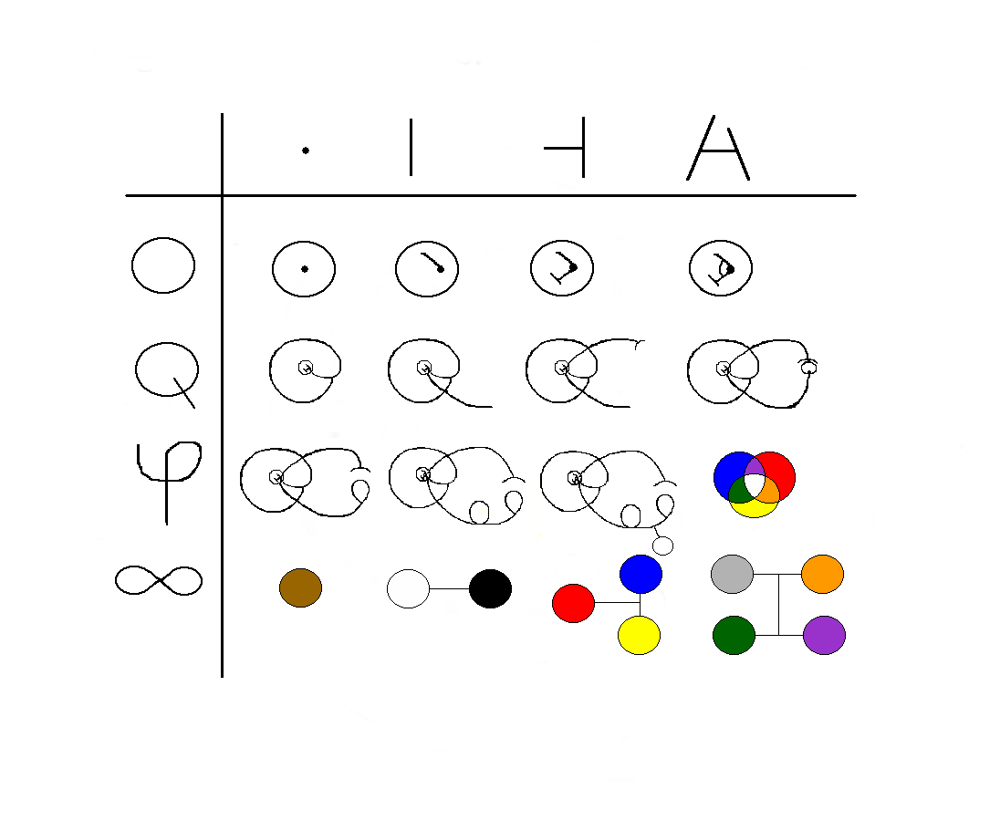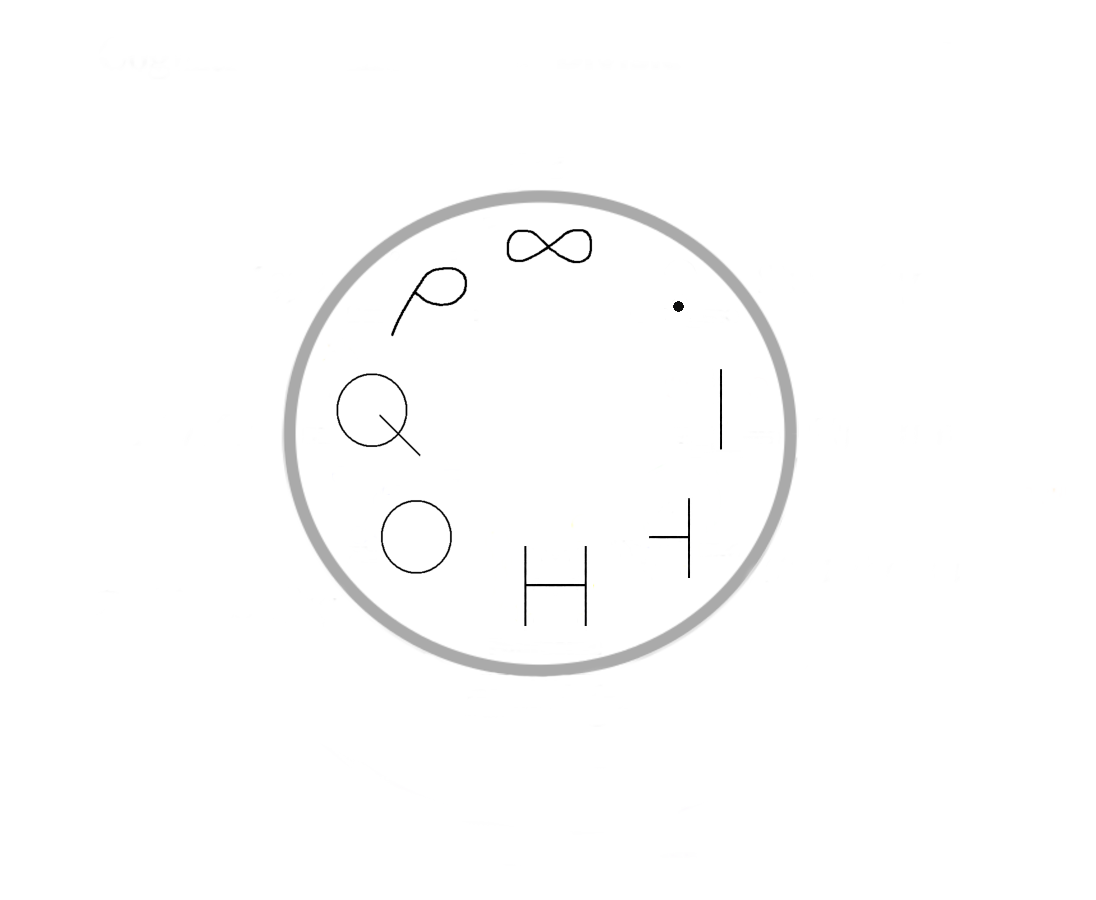 Paste them back to back so that they are on both sides of a single strip, and the open circle that is on one side has the point on the other side. Paste the ends of the strip together with a half turn to form a mobius strip loop structure. In his formulation of the DOE Andrius used the following words to describe the various diagrams. See below.