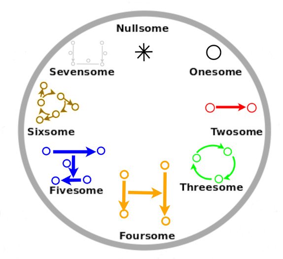 We will use this Onesome, Twosome, ….., Nullsome vocabulary to identify the various diagrams in the modified DOE and DAM sequences in our mobius strip combination. Thus if we start at the DOE Onesome and continue to the DOE Twosome and beyond we will have viewed 16 diagrams before we will return to our starting diagram at the DOE Onesome.