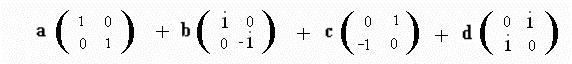 Here 1, -1, i, j, and k are represented by matrices with ij = k, jk = i, ki = j, and ijk = -1.