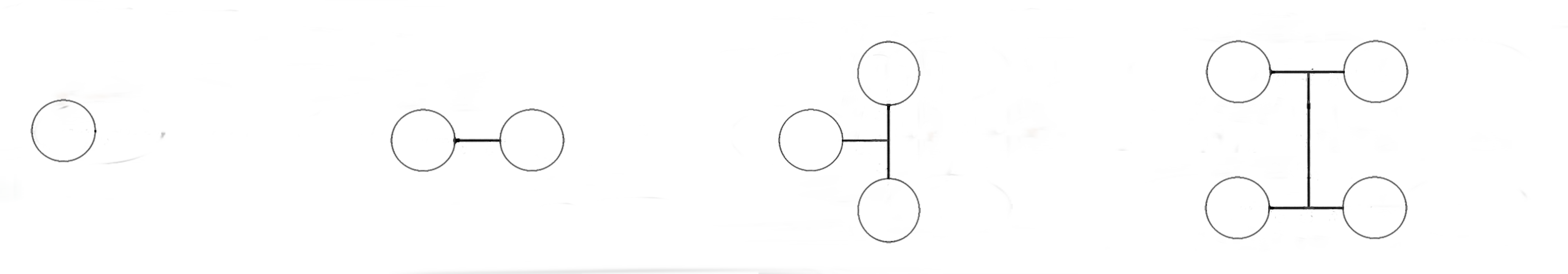 The assumption is that there are four types of relations; self relational relations, linear relational relations, relational relation relations, and interrelational relations. Define a system as comprising a self relational relation and symbolize it as a circle. Then the other relations are symbolized as lines. These can connect systems to other systems, systems to relations, and relations connected only to other relations. Illustrate this as: