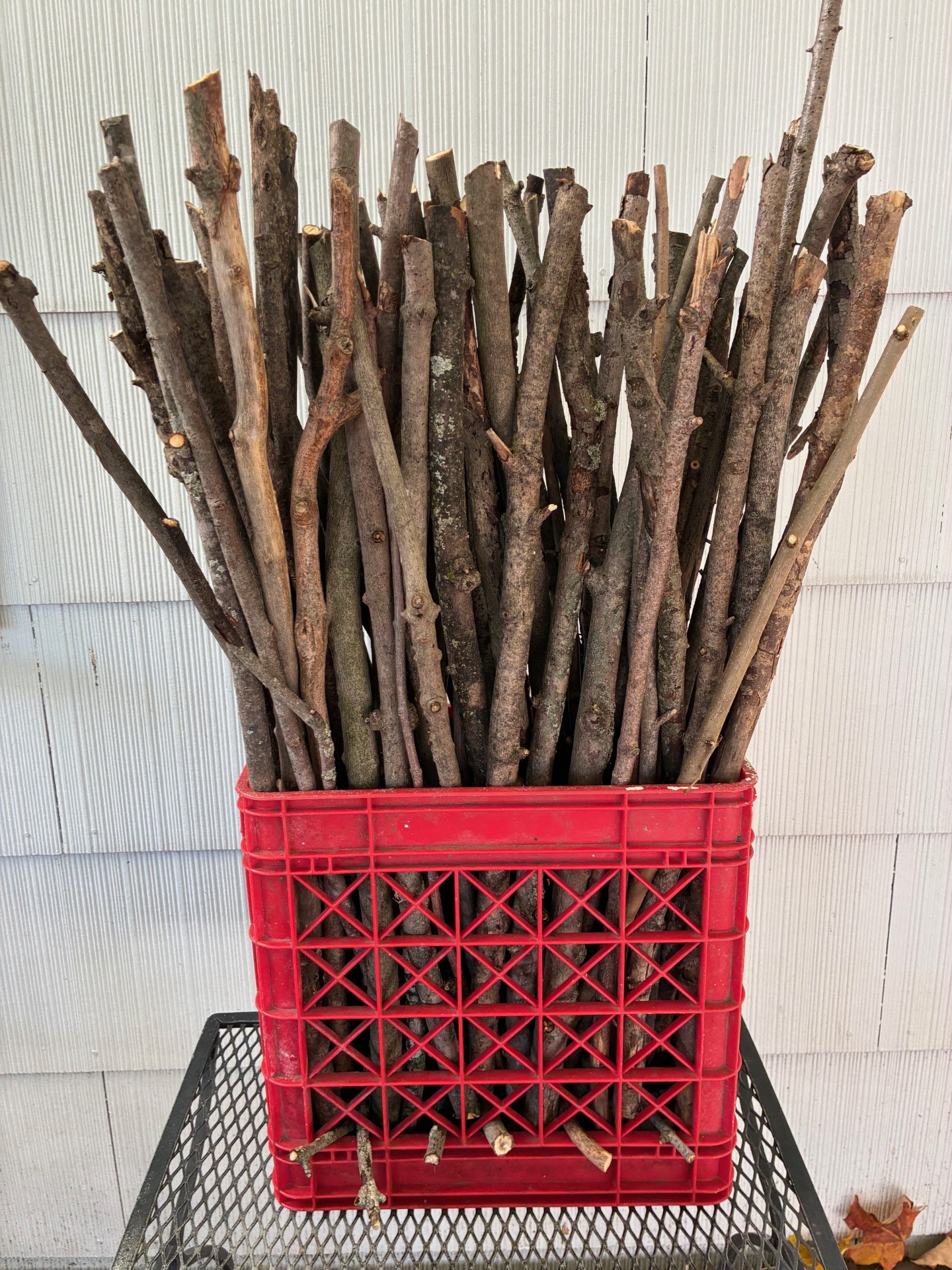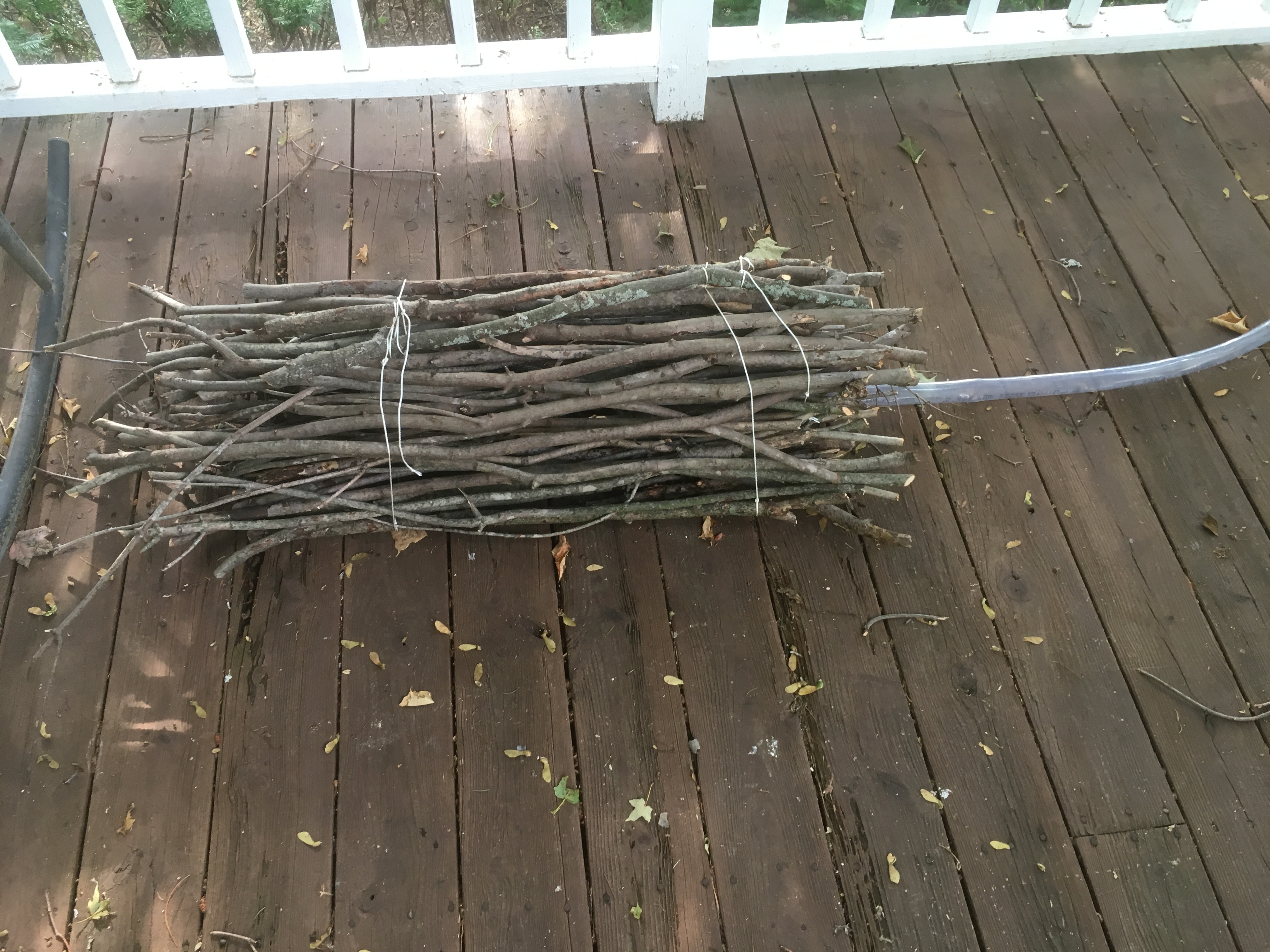 In the summer of 2025 the backyard pond was converted into a second generation TimberFish ecotechnology system. The biofilter was replaced with a bundle of dead sticks from 30 to 36 inches long that were collected from the sugar and red maple trees on the property. A second biofilter containing shorter sticks was constructed from hardware cloth that fitted into a black four gallon milk crate. Here are photos of these two systems.
