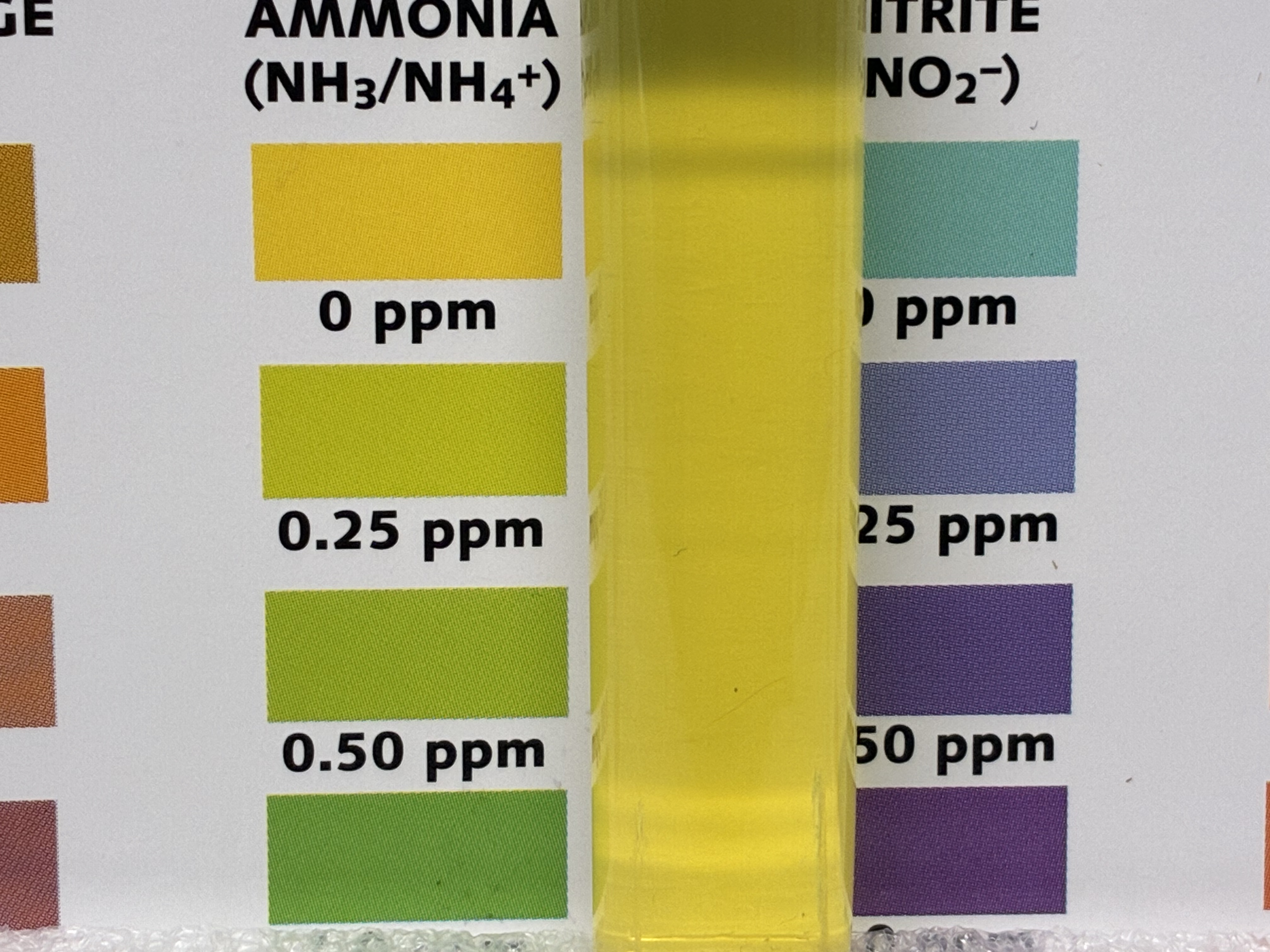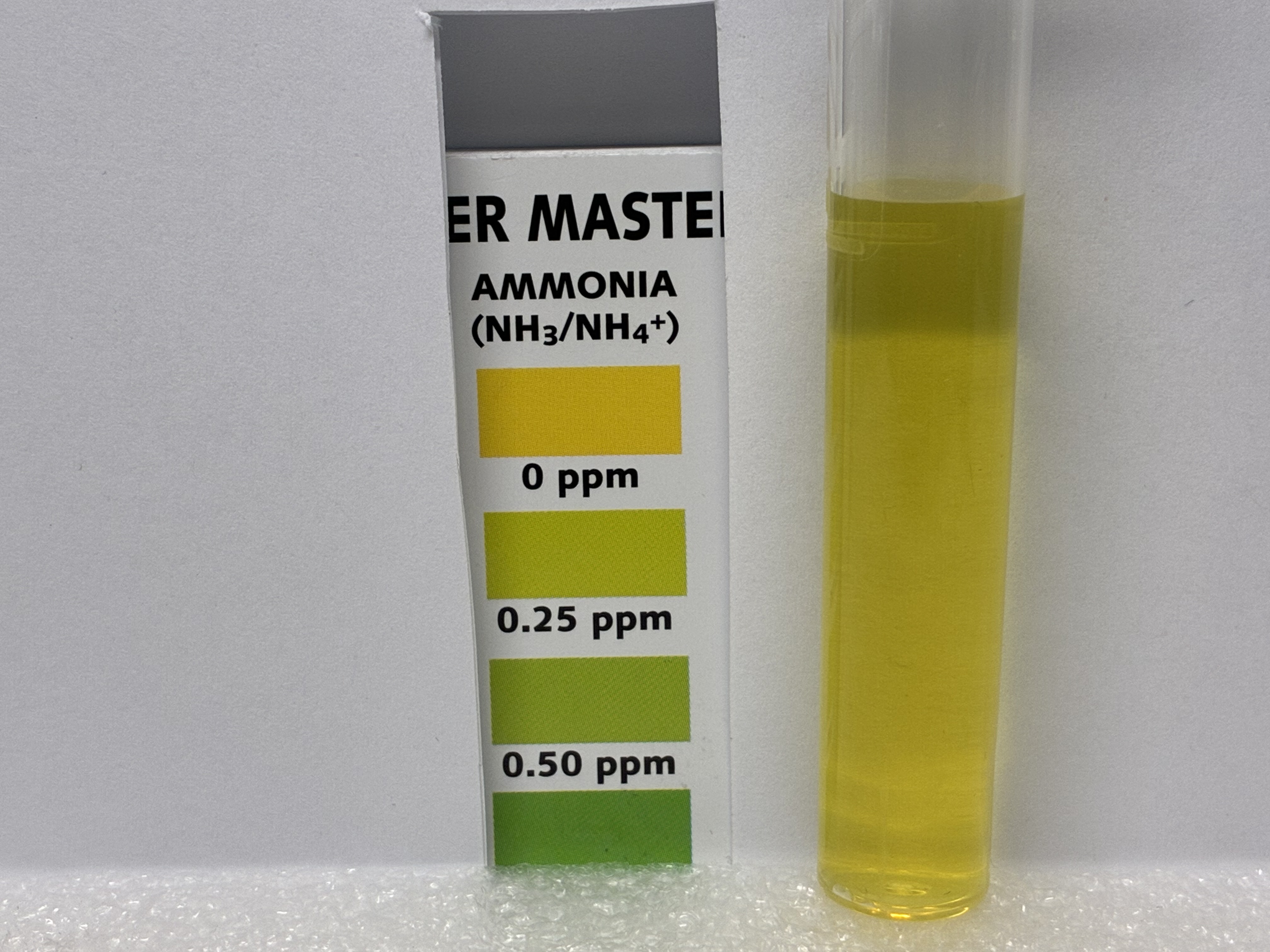 Periodic testing of the decant water for ammonia has shown no detectable ammonia. This can be interpreted as less than 0.25 mg/l according to a freshwater master test kit that is being used to track ammonia. Here are photos of the test kit analytes and the ammonia results for January 10, 2026.