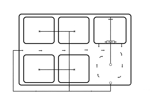 Maintain a flow pattern throughout the system that allows for settling of solid fish wastes and biofloc in specific areas so that they can be efficiently removed by periodic pumping and sent to the collector/selector.