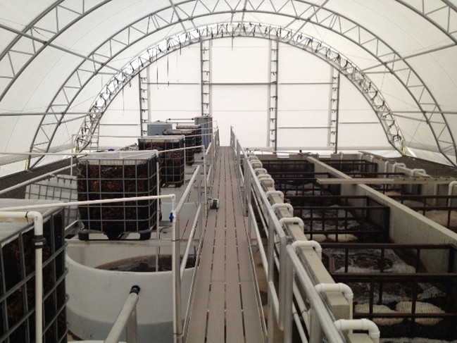 Proposal 1 will be an upgrade to produce up to 100,000 pounds of seafood per year. This will entail the construction of a new building, the installation of four new 25 foot diameter, 20,000 gallon fish rearing tanks and associated equipment, and construction of permanent worm farms, fish processing facilities, and chip management systems. The existing bioreactors, blowers, pumps, and fish tanks will be retained and integrated into the new system.