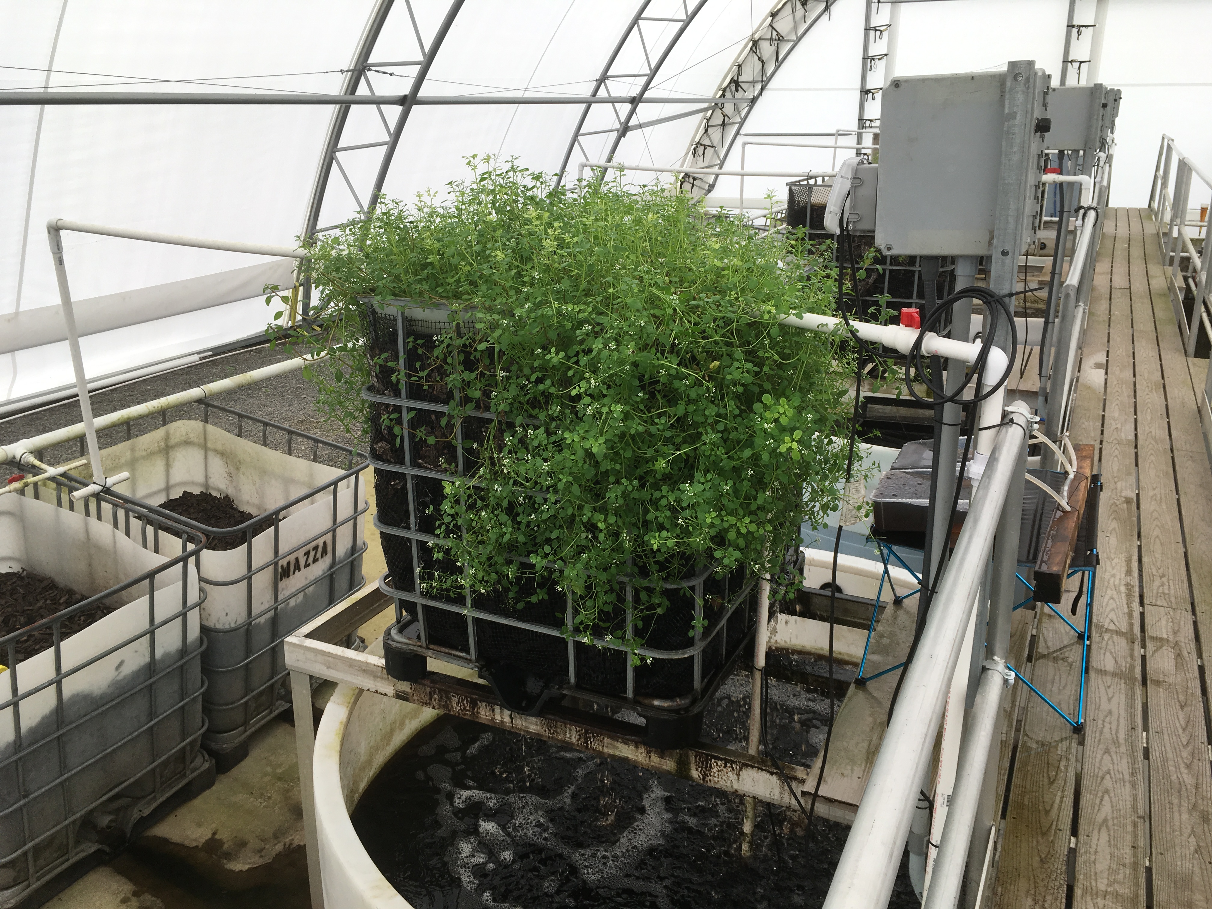 Once a system is adequately populated with microorganisms and invertebrates it can be operated so that fish are removed in either a batch or intermittent steady state mode. When this occurs some of the wood chips will be removed as well.